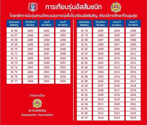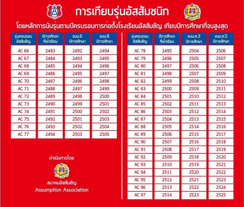 ตารางกิจกรรม สมาคมอัสสัมชัญ
